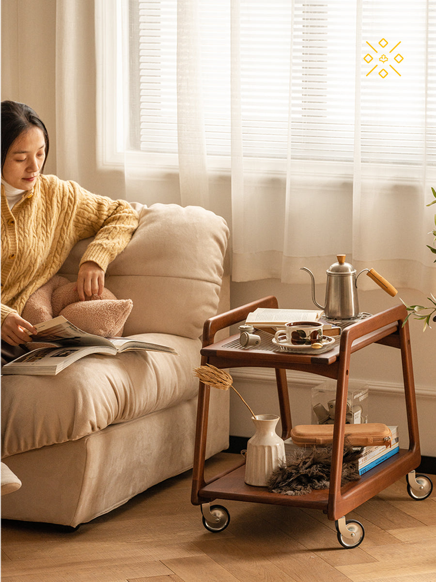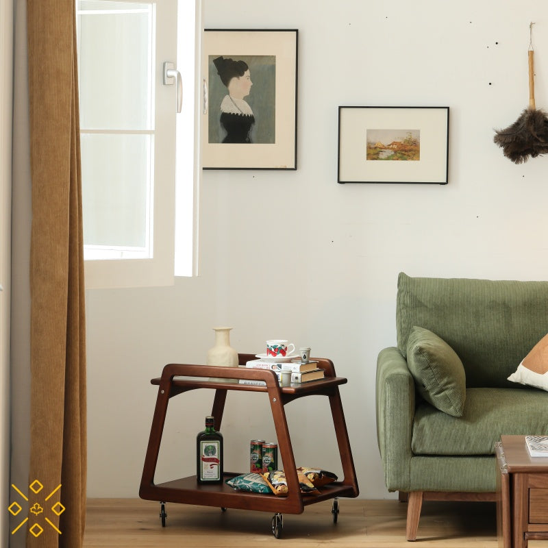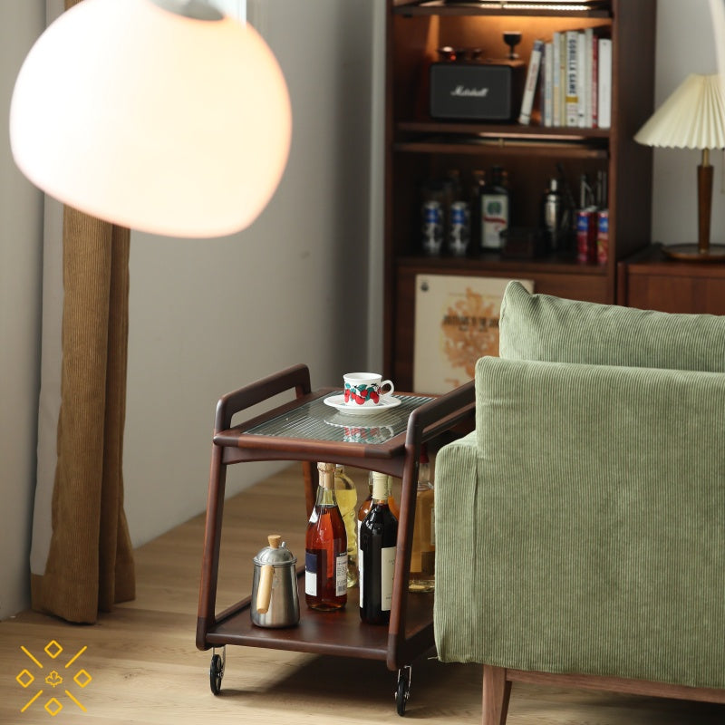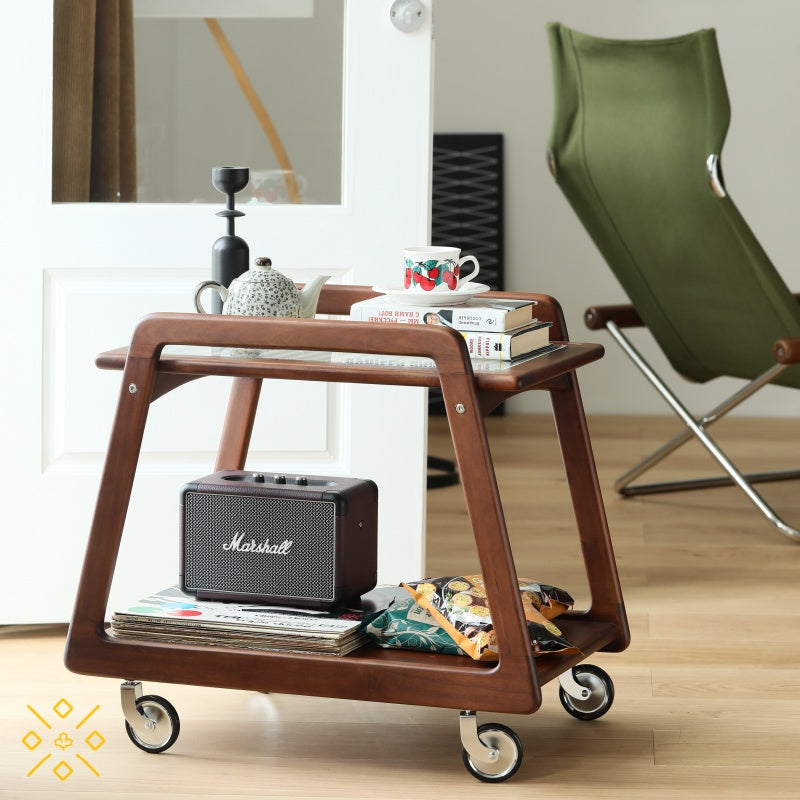 コンパクトな胡桃材のモバイルカート